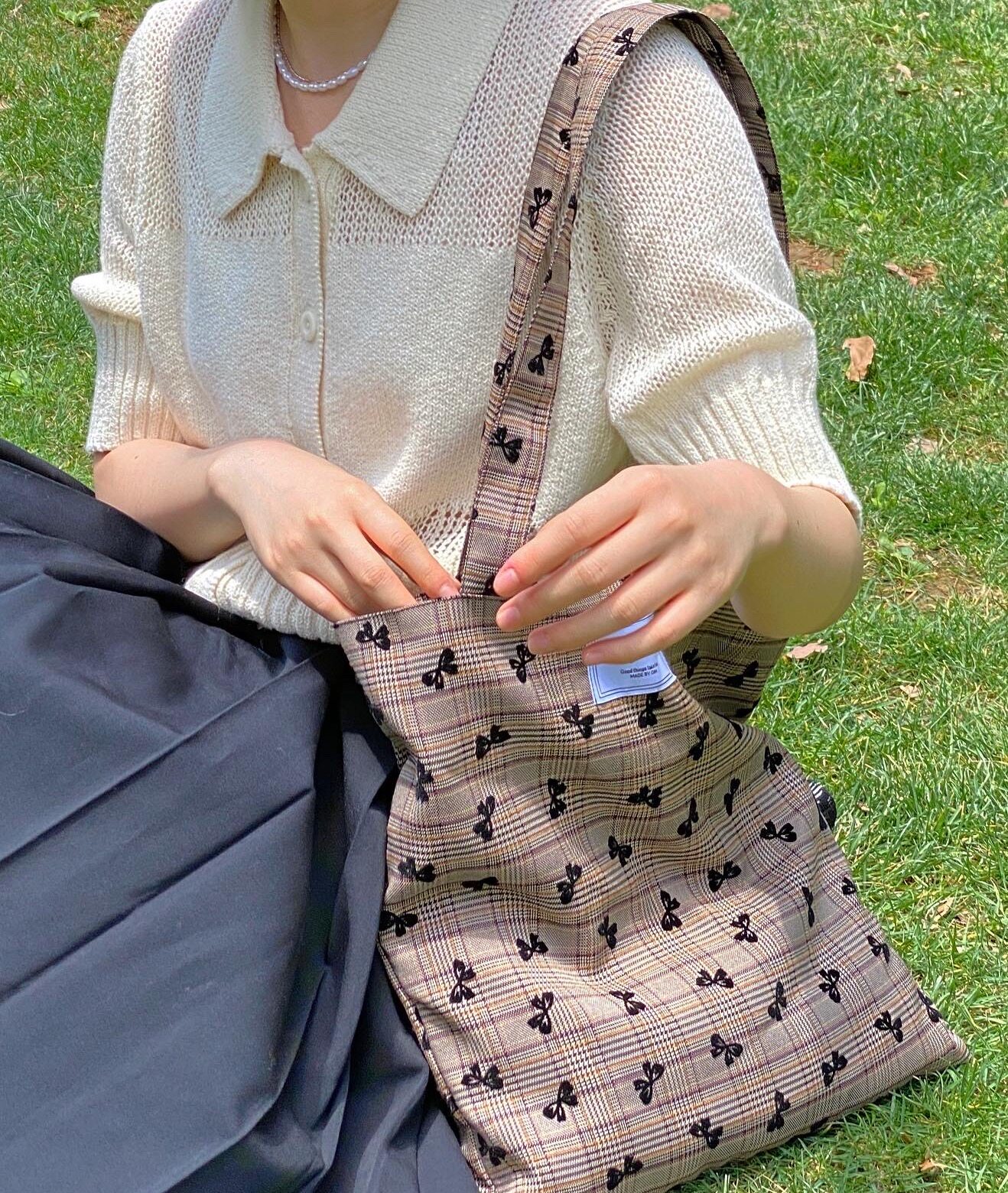 Oin shop独立设计 复古英伦格子 蝴蝶结大容量单肩帆布包 轻便热门设计联盟服务商