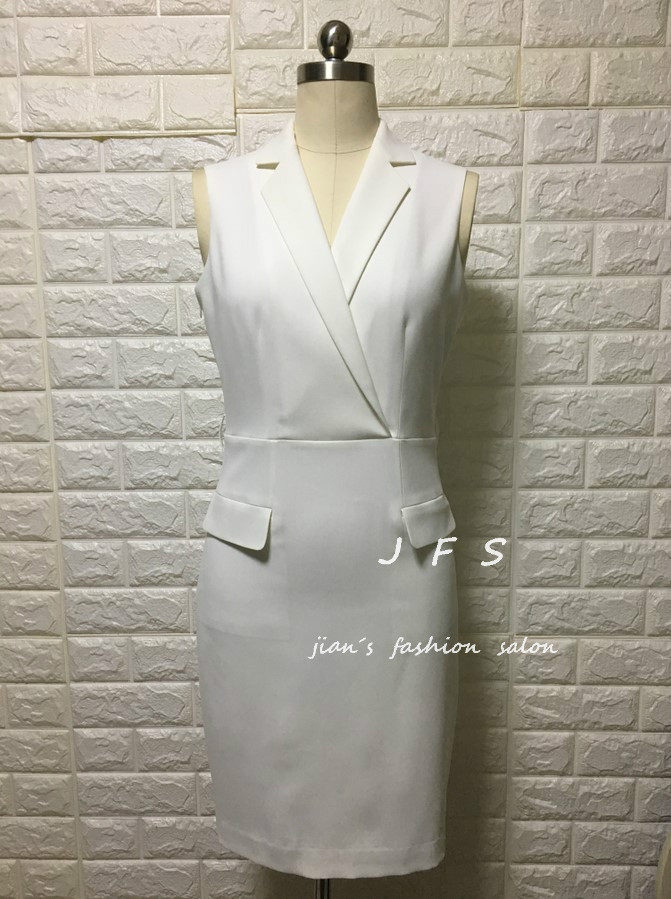 JFS夏季新款韩版修身显瘦无袖背心西装领连衣裙女装热门设计联盟服务商