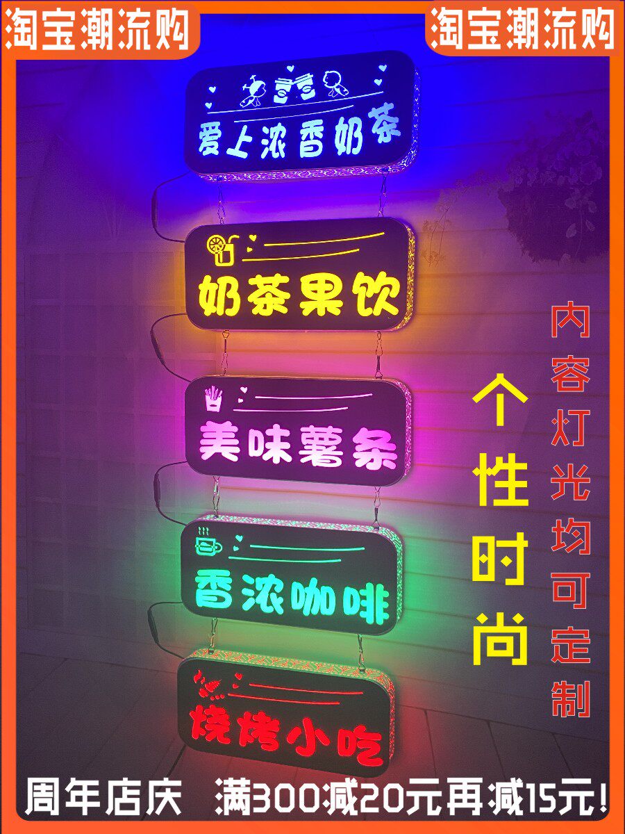 奶茶店铺墙壁装饰广告招牌休闲吧餐厅玻璃门橱窗创意标语发光灯。热门设计联盟服务商
