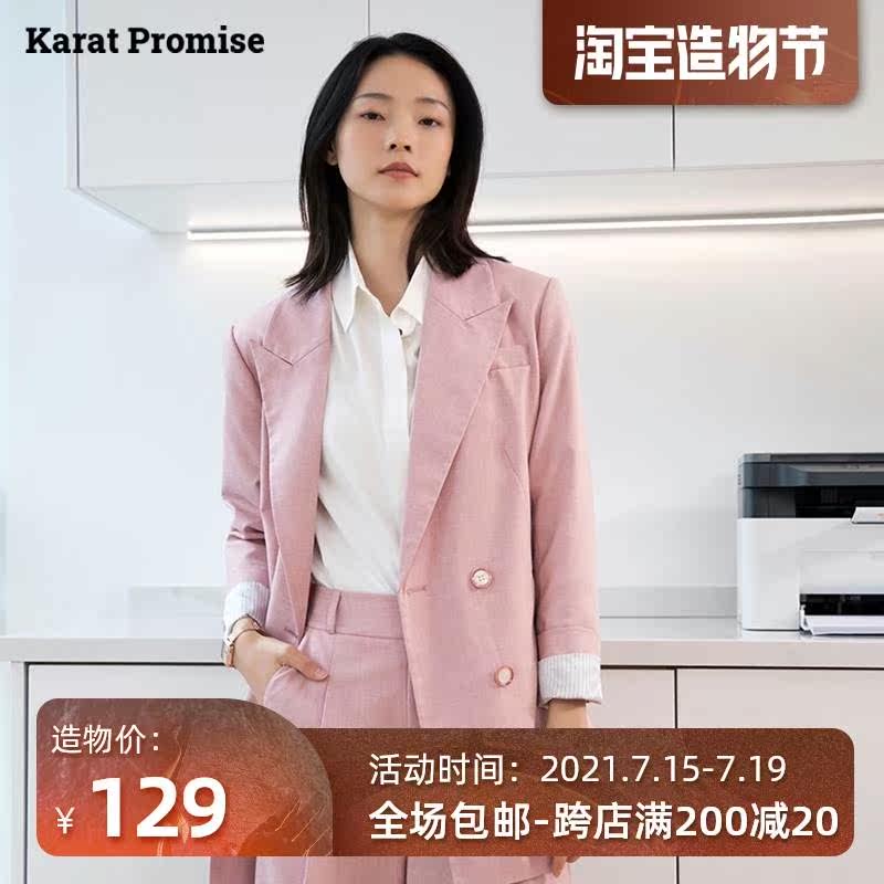 粉色西装外套女221夏季小个子时尚勤设计新款职业0套装通休闲短裤热门设计联盟服务商