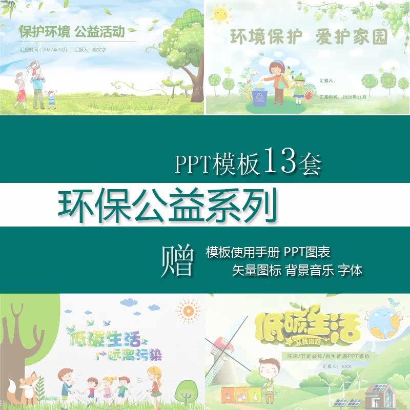 绿色环保公益PPT模板绿色主题低碳环境宣传保护生态节能城市绿化热门设计联盟服务商