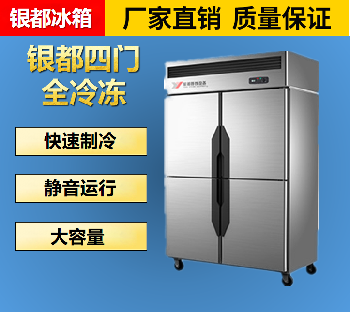 银都四门电冰箱商用展示柜全冷冻柜厨电不锈钢热门设计联盟服务商