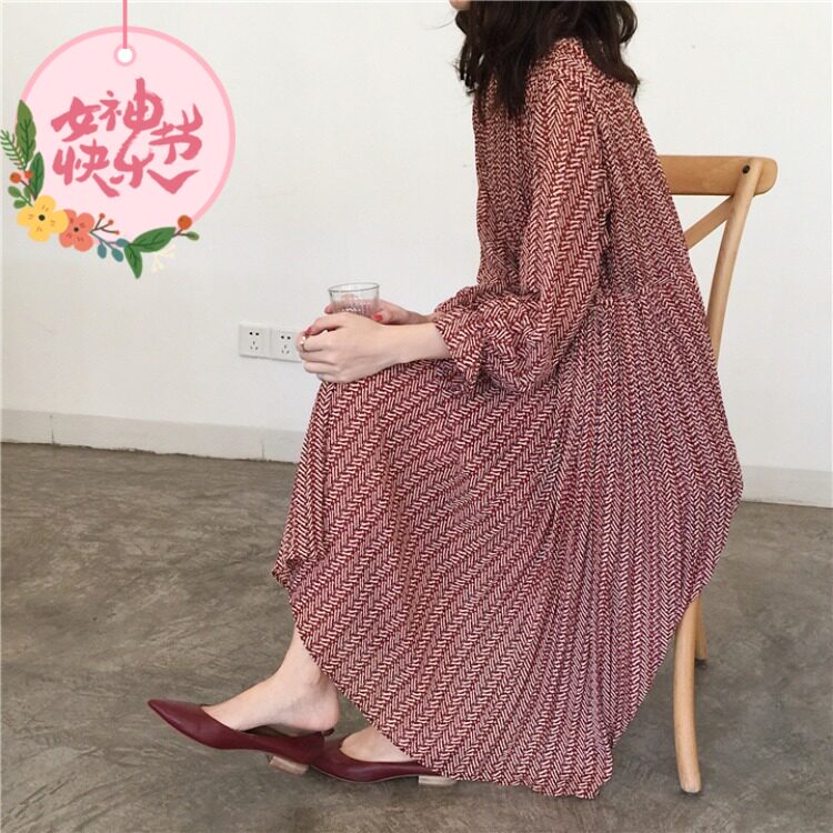 拼接单件其他other长袖红色中长裙早春季新品韩国in质感百褶显瘦热门设计联盟服务商