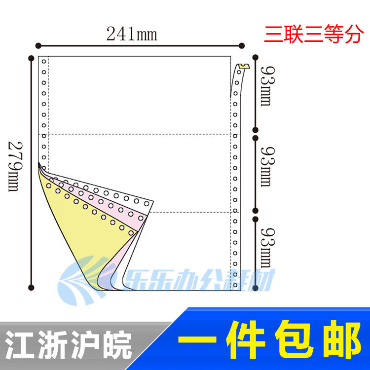 A4彩色三层三等分打印纸机打淘宝发货送货单241-3三联电脑连打纸热门设计联盟服务商